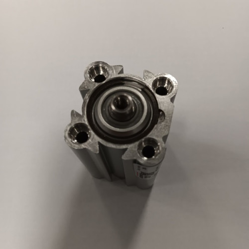 Pneumatic air cylinder constructed using stainless steel for both the tube and the rod and aluminium for the end-blocks.