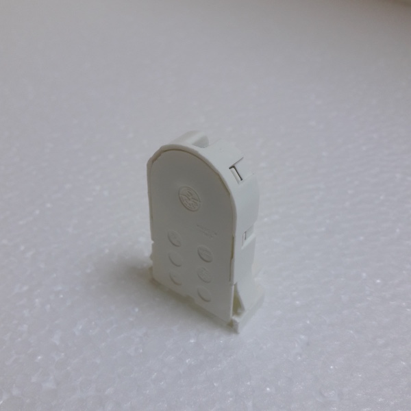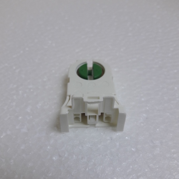 The tube needs to be held in the position to insert the lamp into the socket holder. You can also see the two brass-colored clips into which the pins will connect.