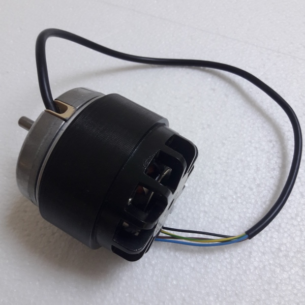 Motor to drive the impeller of a tangential fan. In a tangential fan the air is drawn in over the entire length of the impeller and the airflow is diverted and accelerated by the vortex created by the motor rotation resulting in an almost uniform laminar airflow over the entire outlet width of the fan.