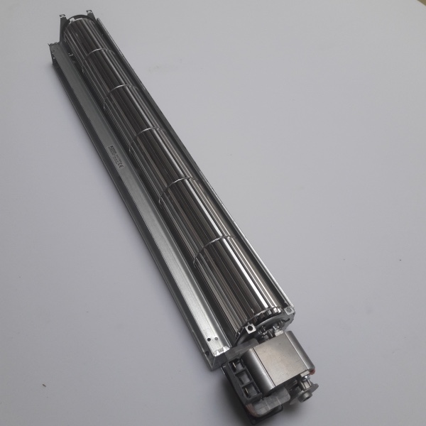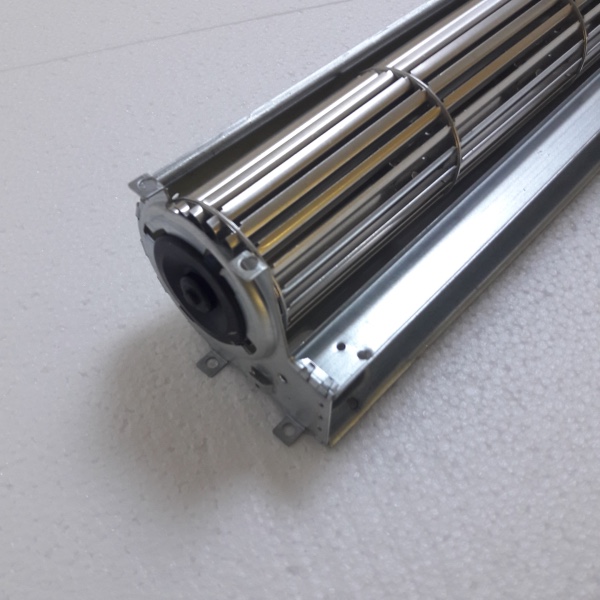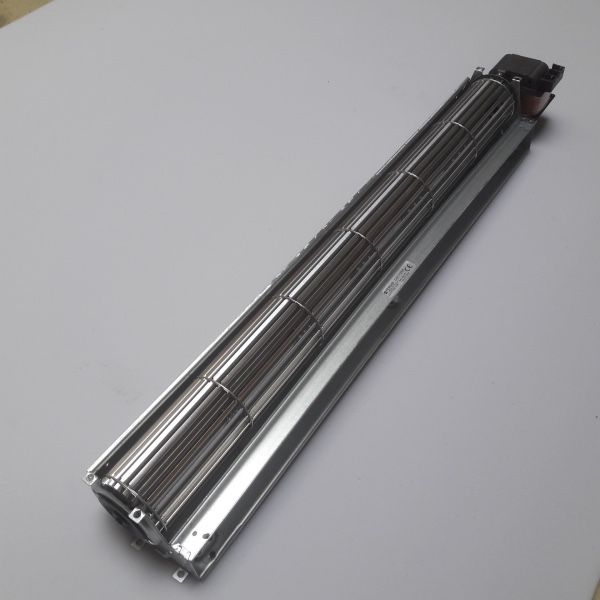 In a tangential blower, the air is drawn in over the entire length of the fan impeller. Inside the impeller, the airflow is diverted and accelerated by the vortex created by the rotation of the impeller.