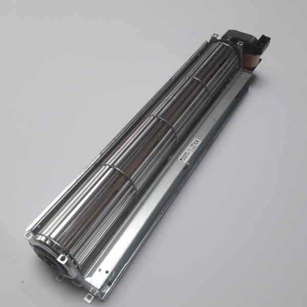 In a tangential blower, the air is drawn in over the entire length of the fan impeller. Inside the impeller, the airflow is diverted and accelerated by the vortex created by the rotation of the impeller.