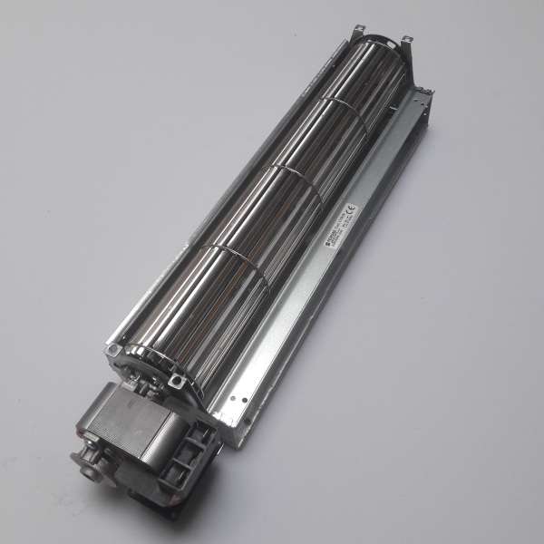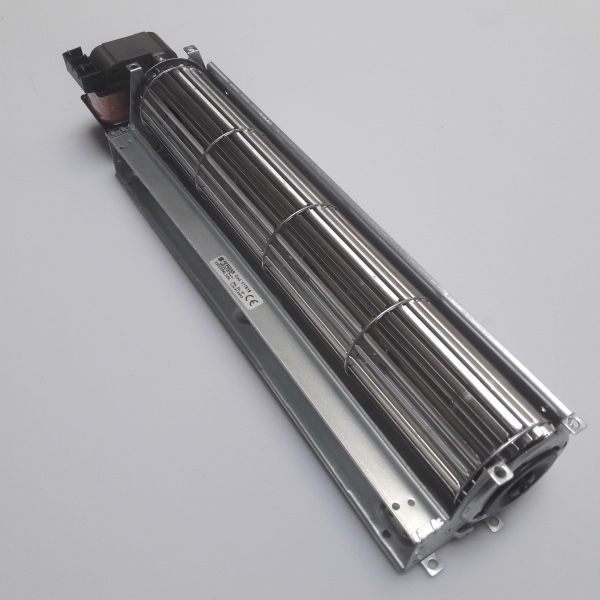 In a tangential blower, the air is drawn in over the entire length of the fan impeller. Inside the impeller, the airflow is diverted and accelerated by the vortex created by the rotation of the impeller.