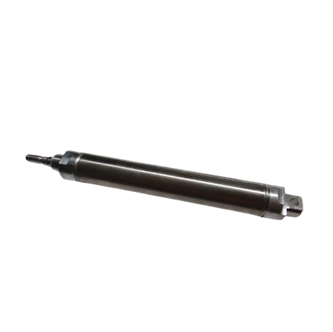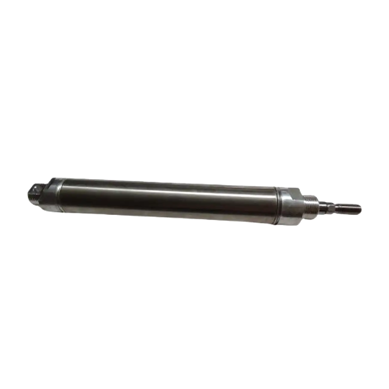 Pneumatic air cylinder constructed using stainless steel for both the tube and the rod and aluminium for the end-blocks.