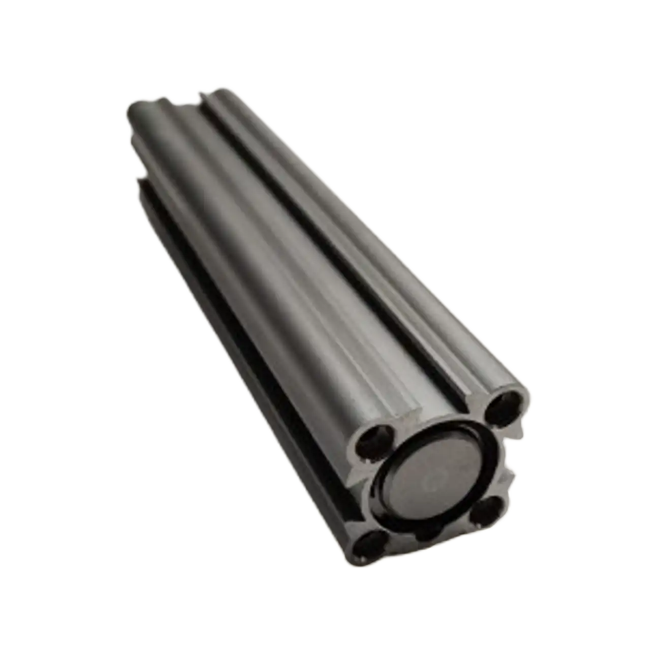 Pneumatic air cylinder constructed using stainless steel for both the tube and the rod and aluminium for the end-blocks.