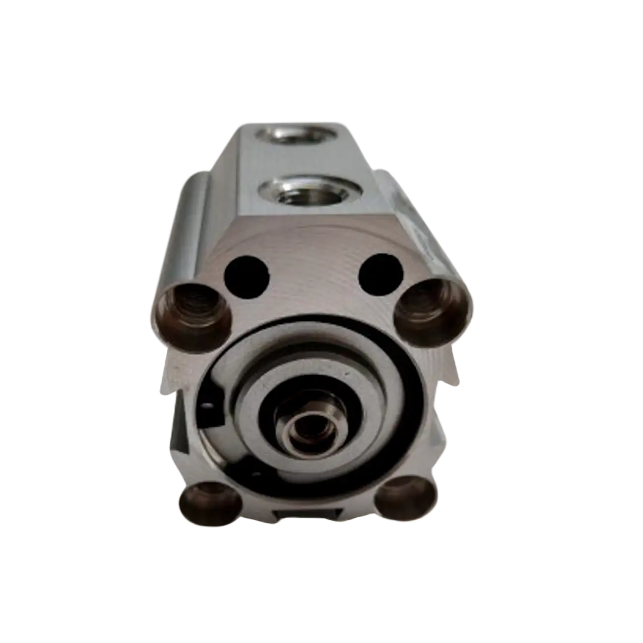 Pneumatic air cylinder constructed using stainless steel for both the tube and the rod and aluminium for the end-blocks.