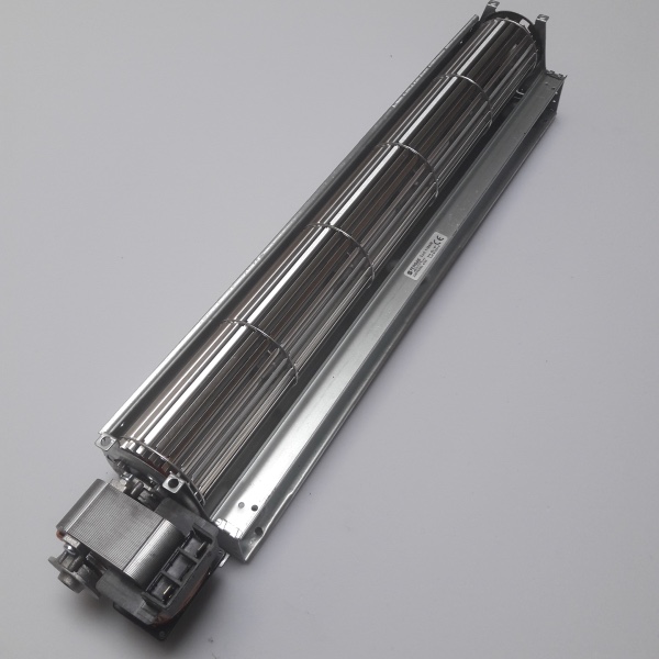 In a tangential blower, the air is drawn in over the entire length of the fan impeller. Inside the impeller, the airflow is diverted and accelerated by the vortex created by the rotation of the impeller.
